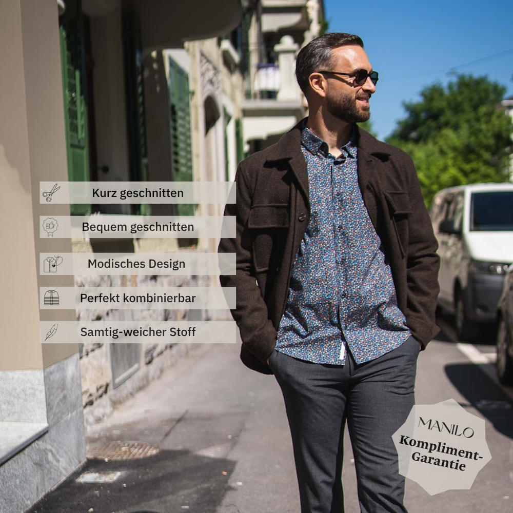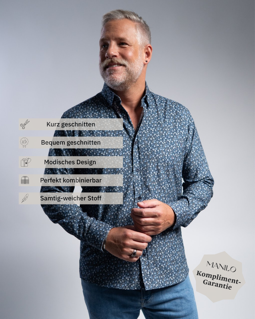 Freizeithemd mit Füchsen und Eichhörnchen Print in Blau