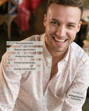 Our promiseMANILO not only gives you a "feel-good" guarantee, but also a "compliments guarantee". Not only will you feel 100% comfortable in a MANILO blouse or shirt, you will also receive compliments. Guaranteed! We are so convinced of this that you will get your money back if you are not satisfied with the product.