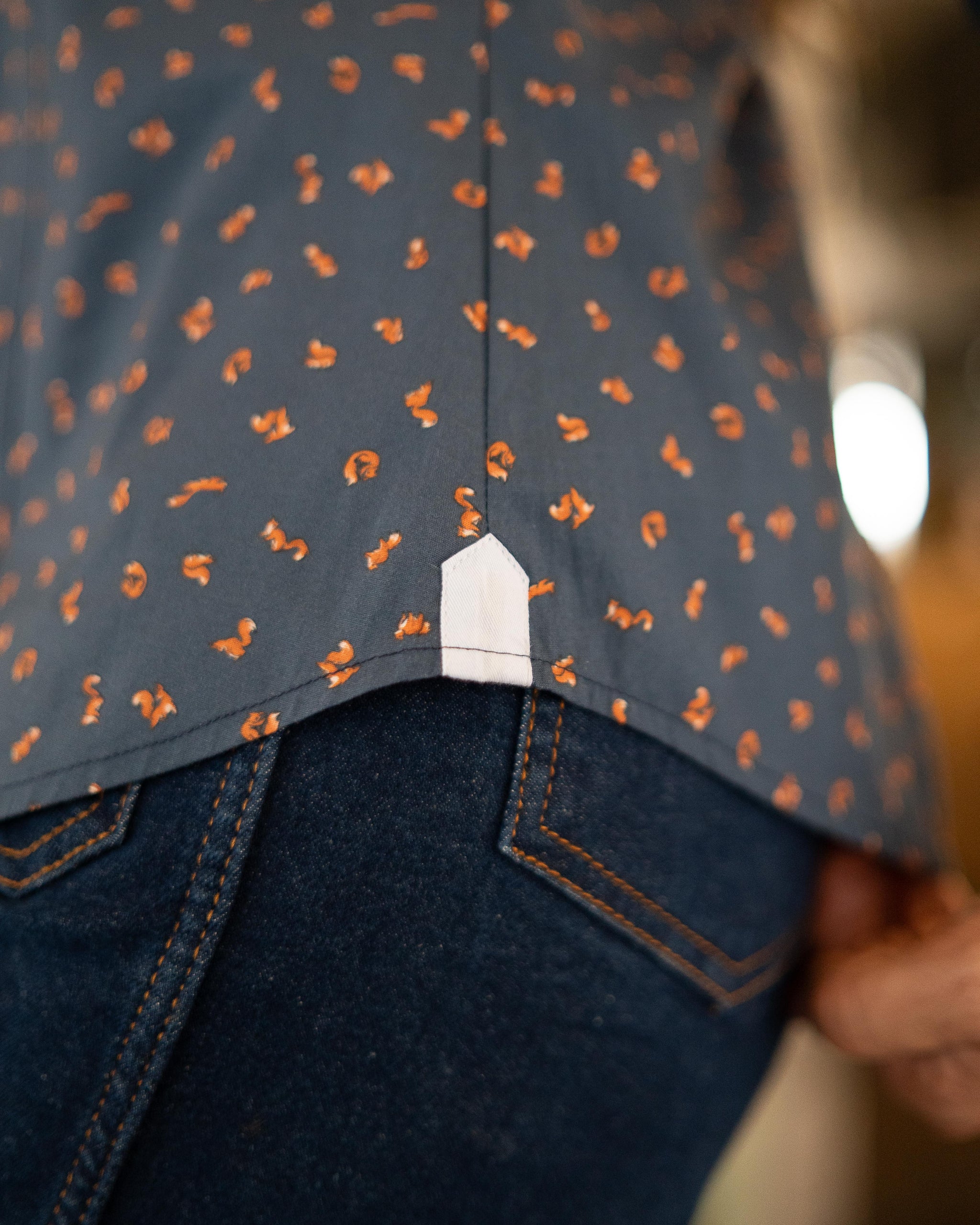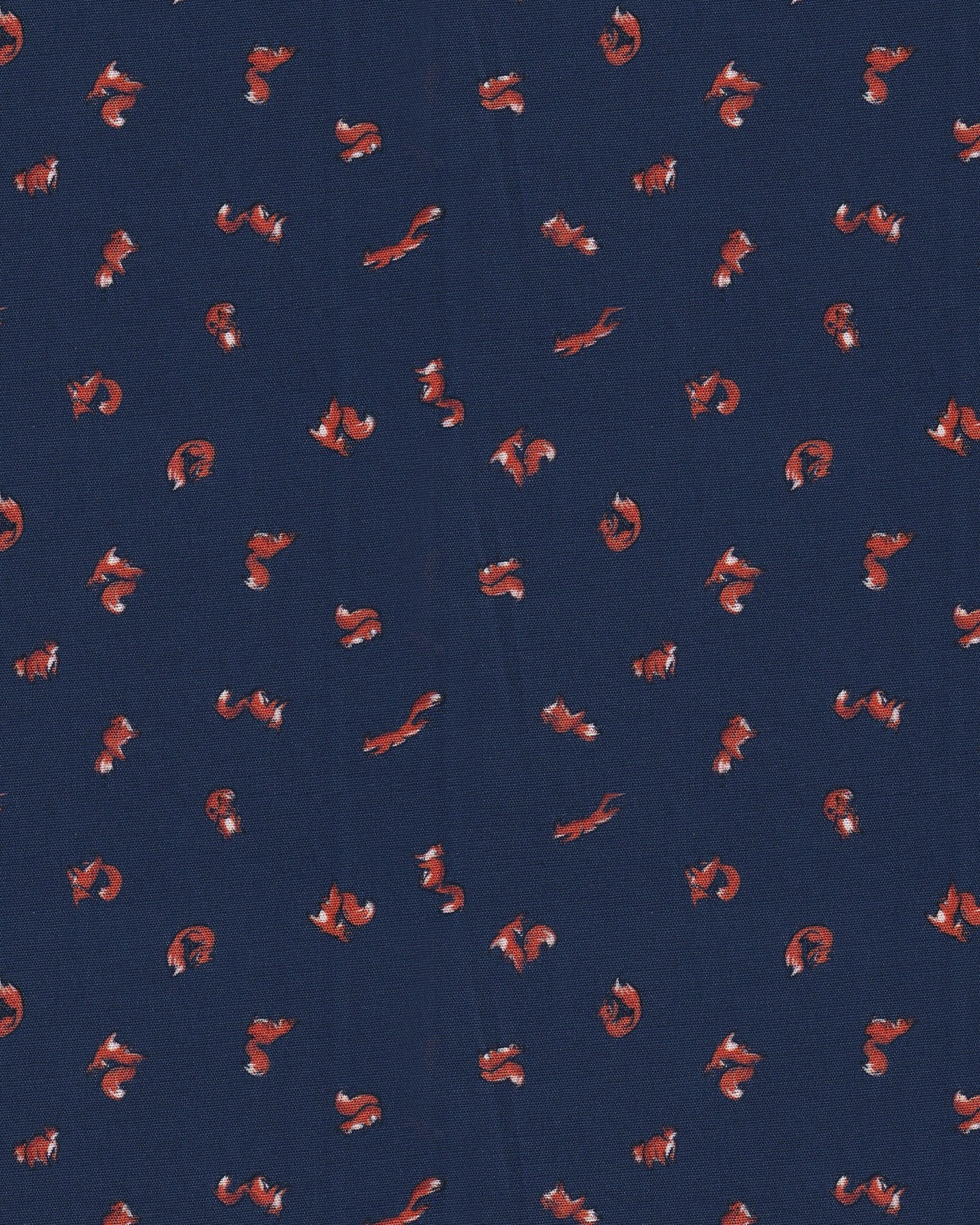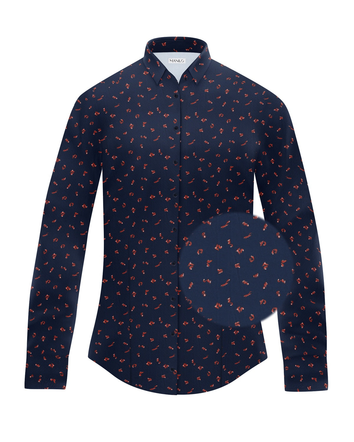 Stretch blouse SOPHIE with fox and squirrel print in blue