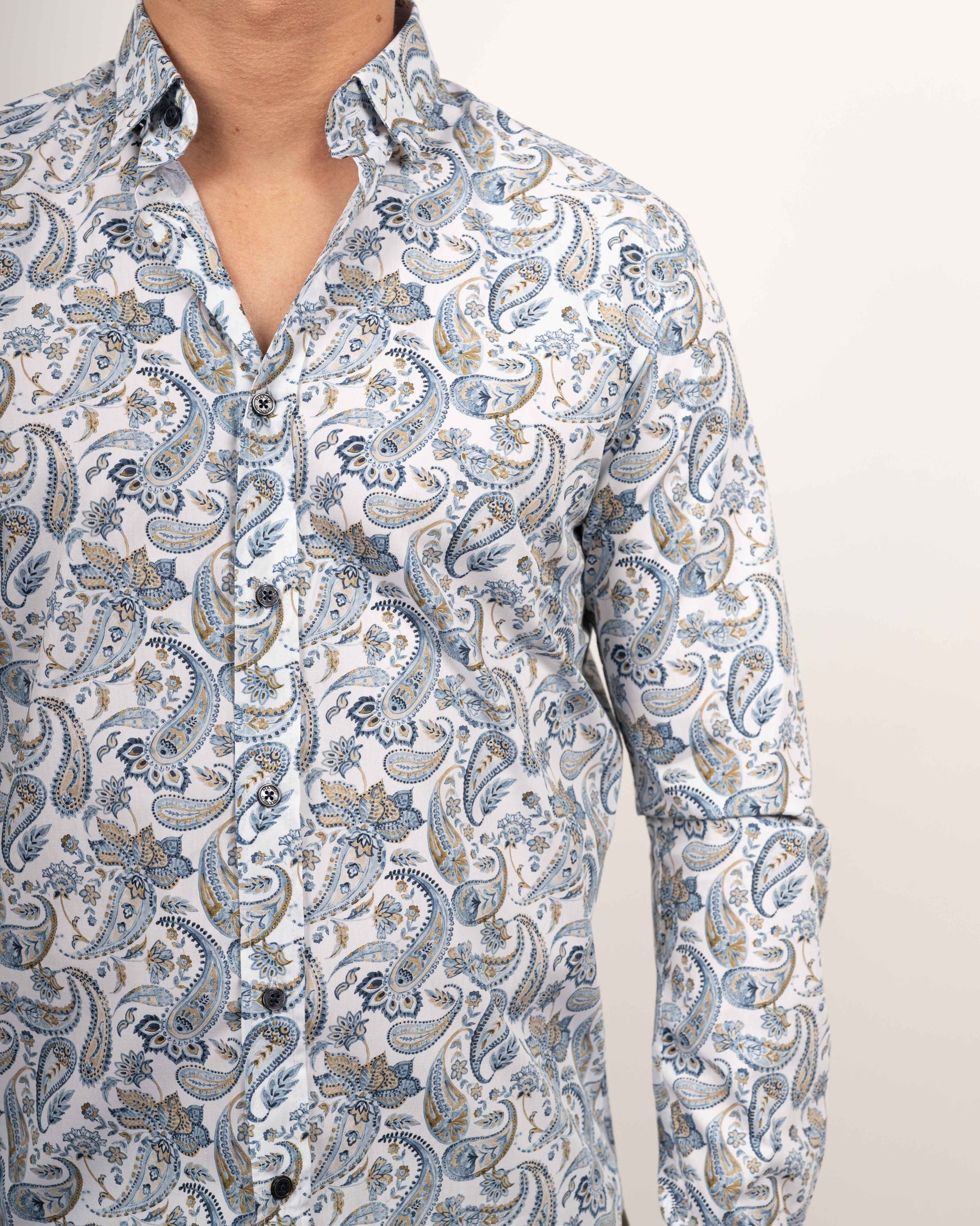 Chemise décontractée à manches longues avec motif Paisley en bleu/marron