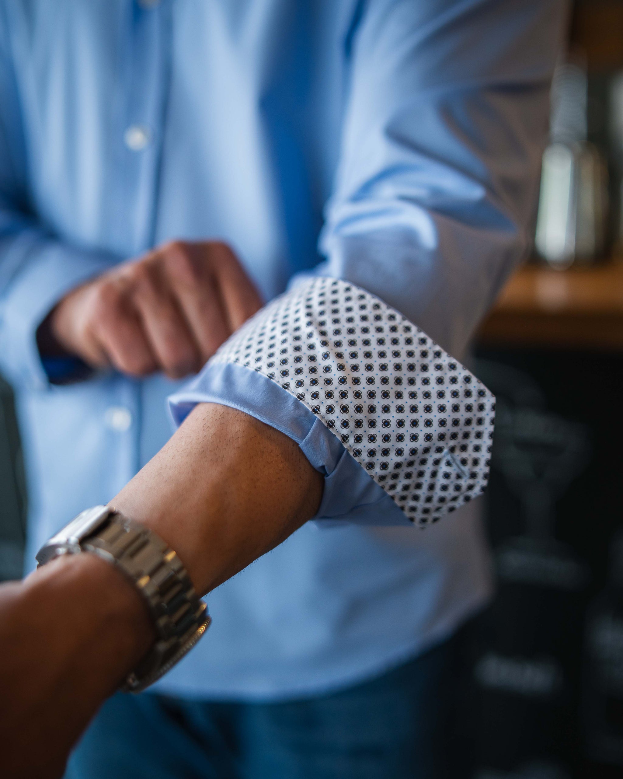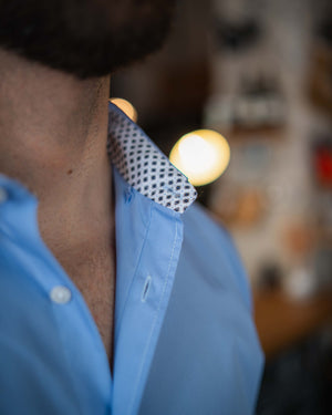 Bügelleichtes Freizeithemd mit Printmuster in Kragen und Manschette in Hellblau