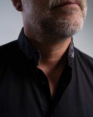 Bügelleichtes Freizeithemd mit Printmuster in Kragen und Manschette in Schwarz