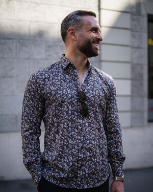 Freizeithemd mit Grafikprint in Braun