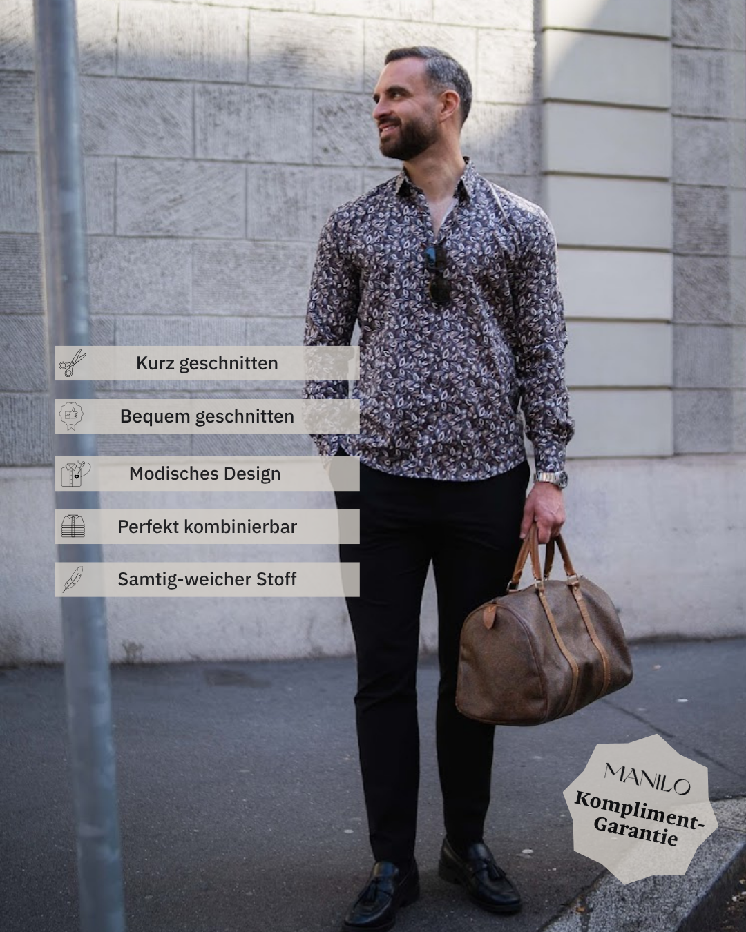 Mit meiner Erfahrung in der Schweizer Textil- und Fashionbranche wurde mir schnell klar: Mode soll hochwertig, nachhaltig und vor allem bequem sein. Genau deshalb entwickelten wir mit MANILO durchdachte Schnitte für Damen und Herren, die sich den ganzen Tag gut anfühlen.