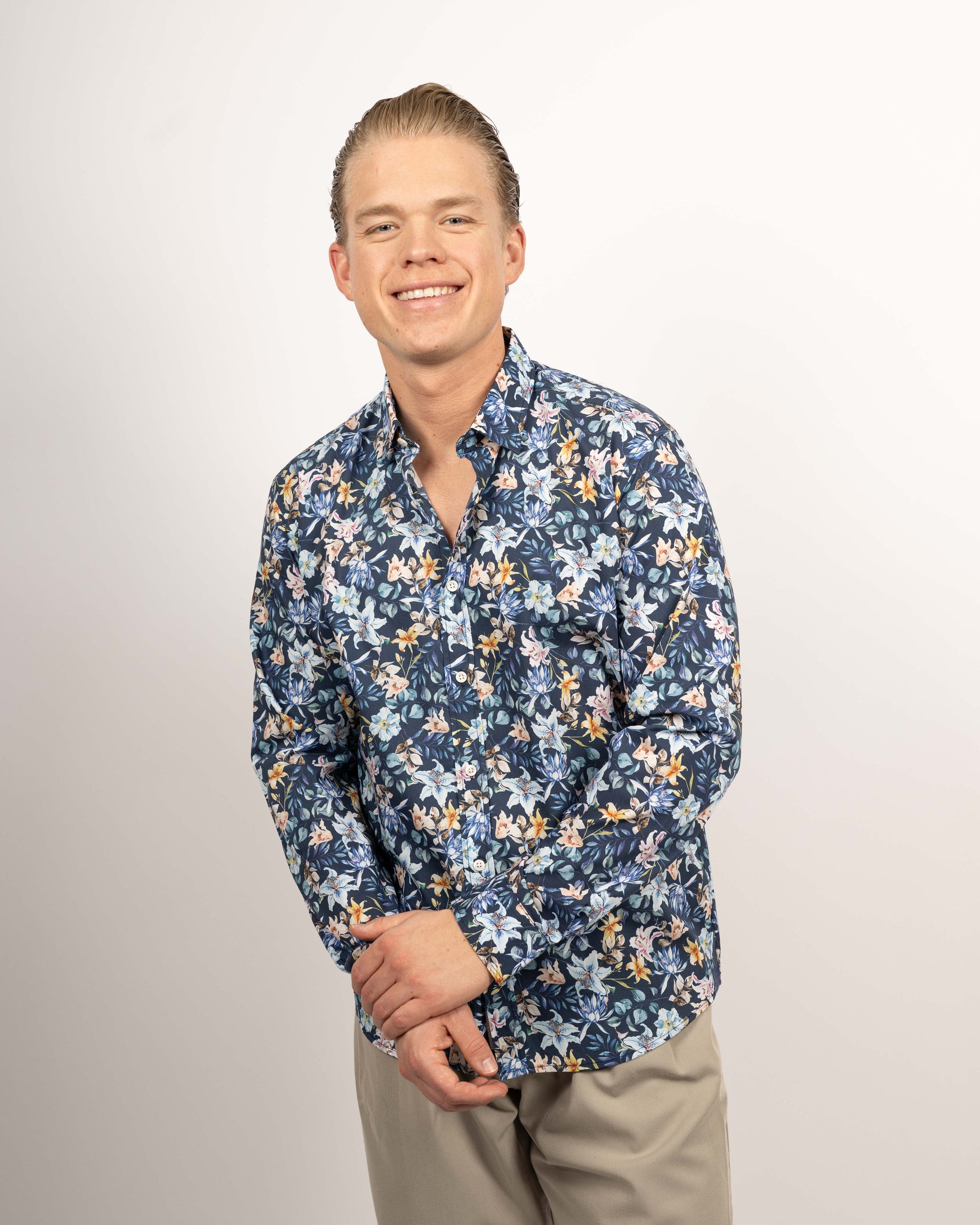 Freizeithemd mit Blumenprint in Navy