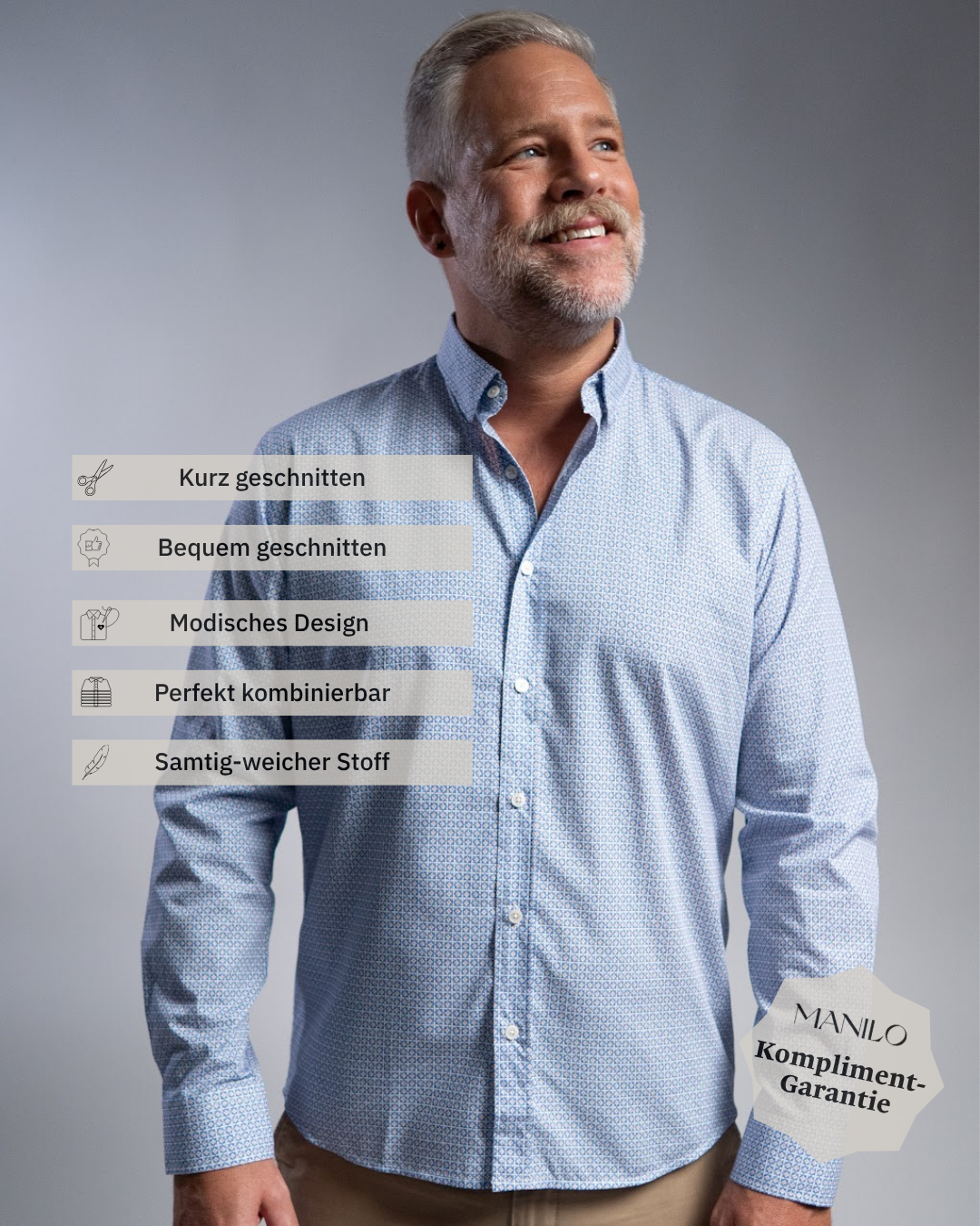 Mit Deiner MANILO Bluse oder Deinem MANILO Hemd wirst Du garantiert positives Feedback bekommen.