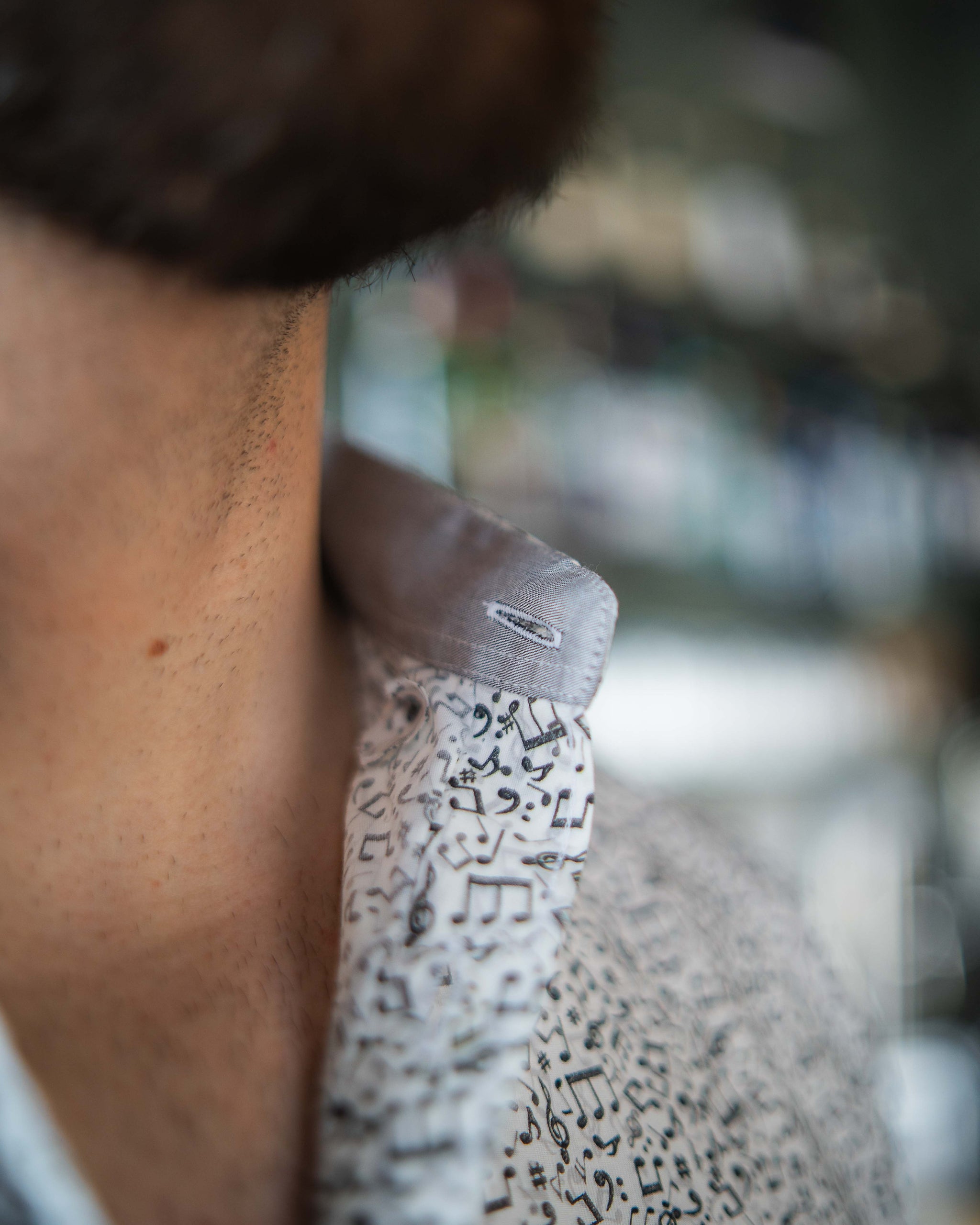 Freizeithemd mit Musiknotenprint in Grau
