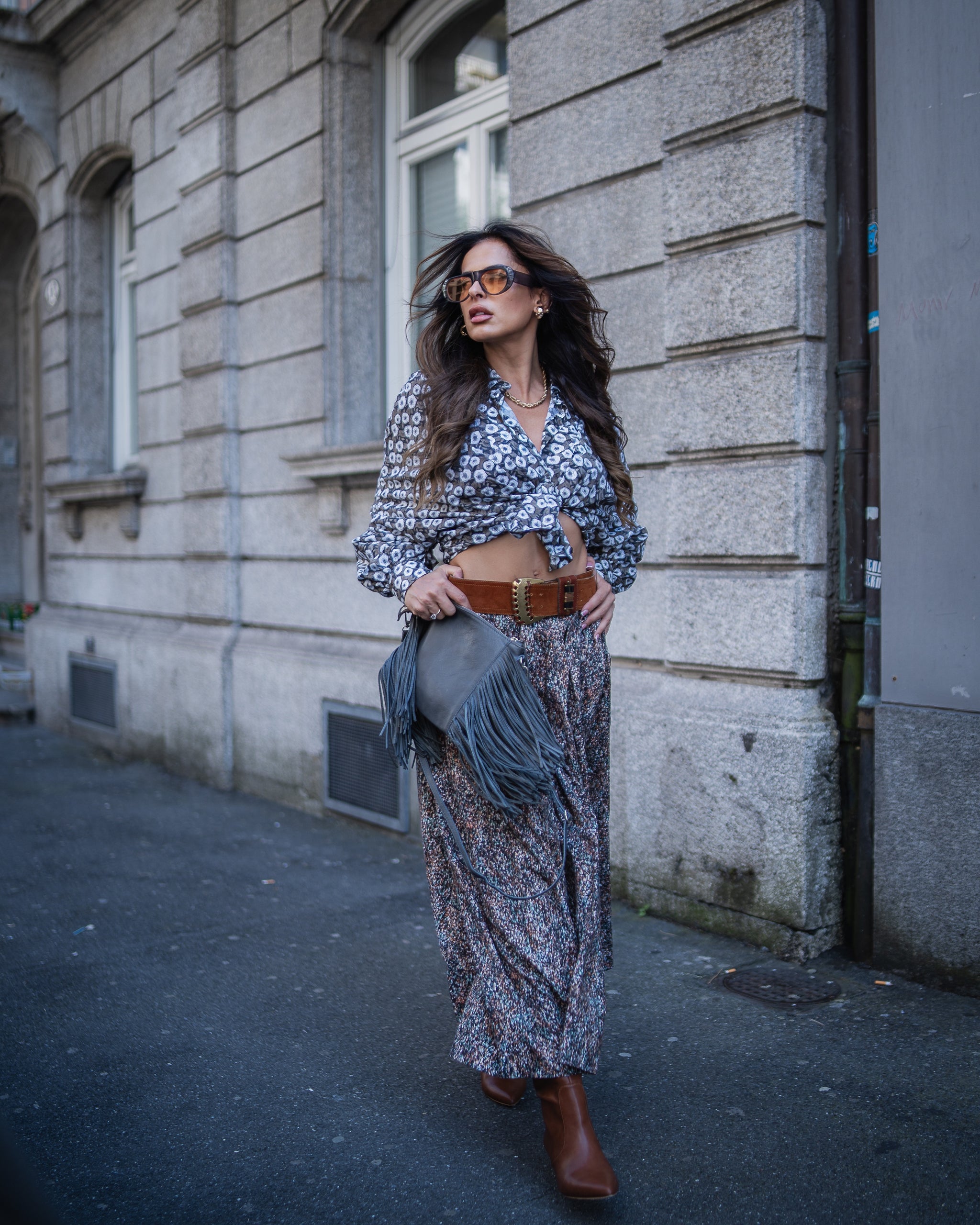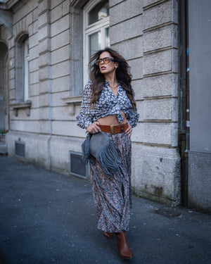 Das Model trägt die Grösse 36/38, bei einer Körpergrösse von 168cm, einem Brustumfang von 89cm, einem Taillenumfang von 68cm und einem Hüftumfang von 91cm.