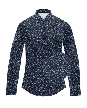 Stretch-Bluse SOPHIE mit Blumenprint in Dunkelblau