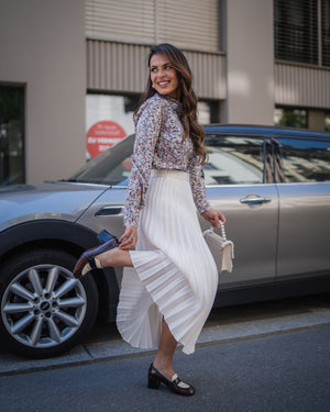 Das Model trägt die Grösse 36/38, bei einer Körpergrösse von 168cm, einem Brustumfang von 89cm, einem Taillenumfang von 68cm und einem Hüftumfang von 91cm.